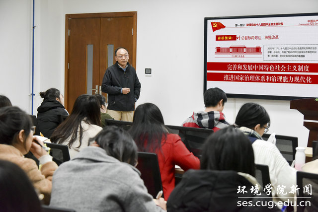 党委统一部署要求,把学习宣传落实十九届四中全会精神作为当前和今后一个时期的重要政治任务,纳入学院正在开展的“不忘初心、牢记使命”主题教育全过程之中,学习好宣传好落实好。用“四个意识”导航、用“四个自信”强基、用“两个维护”铸魂,学思悟贯通、知信行统一。把十九届四中全会的新理念、新论断、新要求,融入到学院“三全育人”综合改革试点中,融入到学院“双一流”建设和综合改革中,争做有理想、有本领、有担当的新时代青年,做生态环保的铁军。