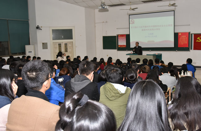 党课上,王焰新校长向大家介绍了党的十九大概况和十九大报告内容。王焰新认为,党的十九大是在中国特色社会主义进入新时代的党代会,是部署决胜全面建成小康社会、开启全面建设社会主义现代化国家新征程的党代会,是习近平新时代中国特色社会主义思想确立为行动指南的党代会;是中国共产党即将进入第二个百年的党代会。党的十九大的重要成果主要体现为“三个一”:一个新领导集体;一个新思想;一部新党章。习近平新时代中国特色社会主义思想是大会的灵魂和主线,为开启新时代、踏上新征程提供了重要思想保障。