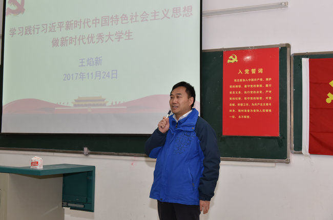 王焰新要求,一要抓好党的十九大精神学习理解,原原本本、原汁原味地学习党的十九大报告,坚持读原著、学原文、悟原理,特别要结合高等教育与成长成才学深悟透,系统理解把握十九大提出的新思想、新观点、新论断。要深刻领会党的十九大的主题;深刻领会习近平新时代中国特色社会主义思想的历史地位和丰富内涵;深刻领会党的十八大以来党和国家事业发生的历史性变革;深刻领会中国特色社会主义进入了新时代;深刻领会我国社会主要矛盾的变化;深刻领会新时代中国共产党的历史使命;深刻领会实现第一个百年奋斗目标和向第二个百年奋斗目标进军;深刻领会社会主义经济建设、政治建设、文化建设、社会建设、生态文明建设等方面的重大部署;深刻领会国防和军队建设、港澳台工作、外交工作的重大部署;深刻领会坚定不移全面从严治党的重大部署。二要以身作则,做合格党员(入党积极分子)。三要知行合一,做优秀环境人。