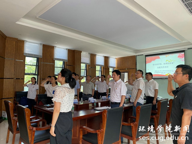 党委书记李素矿、大气科学系主任李双林、党支部书记孔少飞以及教工党员;武汉区域气候中心党委书记、主任夏智宏,科长马德栗,金沙国家大气本底站站长、支部书记王凯,副站长岳岩裕等20余位党员参加。王凯主持主题党日活动,岳岩裕带领全体党员重温入党誓词。