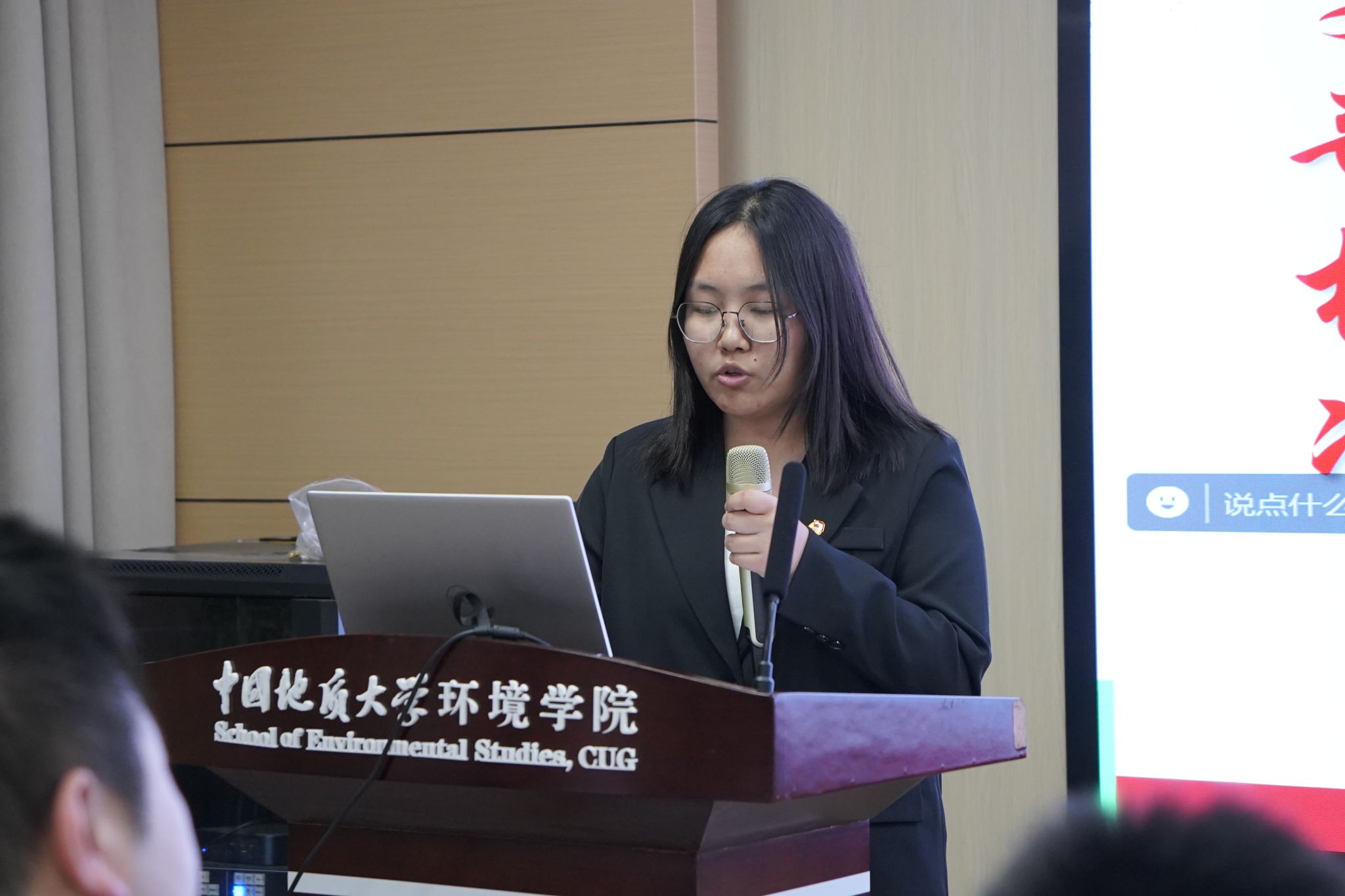 姜明敏总结讲话。他对各团支部的风采展示表示肯定,并重点阐释群团组织政治性、先进性、群众性的内涵意蕴及现实要求。他指出,基层团支部是共青团工作的“神经末梢”,要做到党有号召、团有行动,为学院高质量发展凝聚、培养和输送优秀青年学生,通过强引领、优服务使学院团组织同青年学生的联系更加紧密。他强调,基层团支部要联结上级党团组织、团结身边广大同学,切实发挥好师生之间的桥梁纽带的作用。他希望在学院团委的带领下,各团支部携手努力、追求卓越,引领团员青年在奋斗的年纪释放青春、绽放才华,成长为更有责任“红”、更有底色“专”、更加多维“能”、更加全面“优”的新时代生态环保铁军。