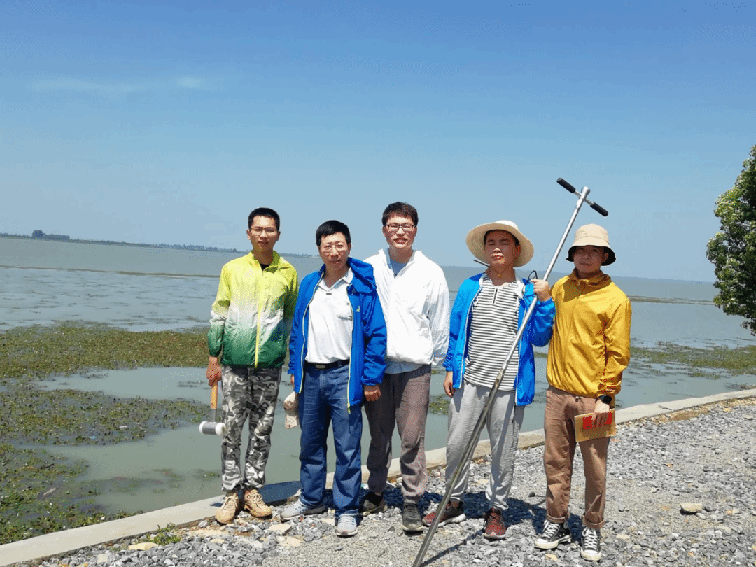 顾延生教授(左二)带领团队在江汉湖群科研调查