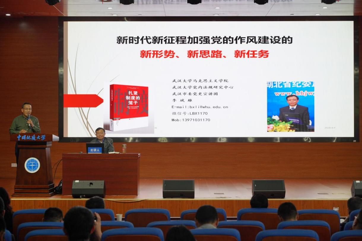 武汉大学党内法规研究中心副主任李斌雄教授作《新时代新征程加强党的作风建设的新形势、新思路、新任务》专题辅导报告。他系统梳理了习近平总书记关于加强党的作风建设的重要论述,回顾总结了贯彻落实中央八项规定精神取得的显著成效,深刻分析了新时代新征程加强党的作风建设的思想指引和基本遵循,并结合实际阐述了贯彻落实中央八项规定精神的实践路径。