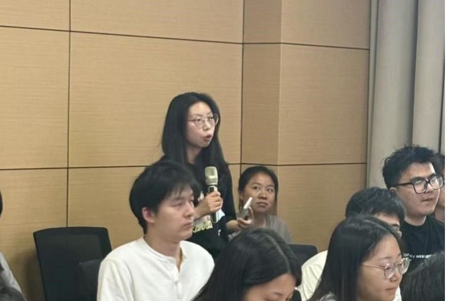 互动交流环节中,同学们围绕个人能力培养和未来职业发展等问题踊跃发言,积极请教。梅金华校友耐心细致地解答了同学们的问题,针对研究生个人能力培养问题,她建议同学们要在科研中养成敢思考、敢创新、敢尝试、敢解决的处理方式,既要强化能力提升,也要重视情商培养;针对女性职业发展问题,她结合自身实际经历与行业观察,建议同学们根据自身兴趣和实际情况制定发展路径,保持谦逊学习的态度,提高个人综合素养,强化自我调节能力,合理分配个人时间,权衡生活与工作关系,自尊自爱,坚定信念,茁壮成长。