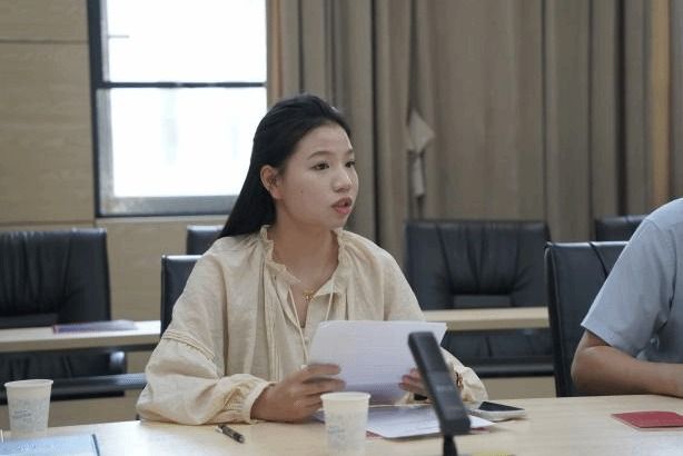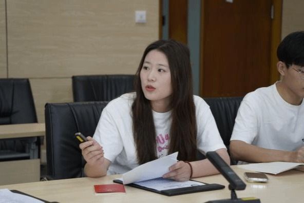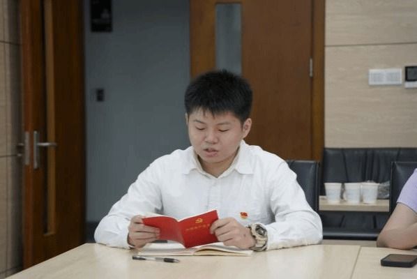 “张国旗班”党支部郭玉倩介绍支部建设情况。她从红、专、能、优四个方面分享了她对张国旗精神的理解,并向大家介绍了“张国旗班”党支部的建设情况以及支部成员在学习科研、社会实践、志愿服务等方面展现的责任担当。随后,“张国旗班”党支部魏成涛诵读党章第七章-党的纪律部分内容。