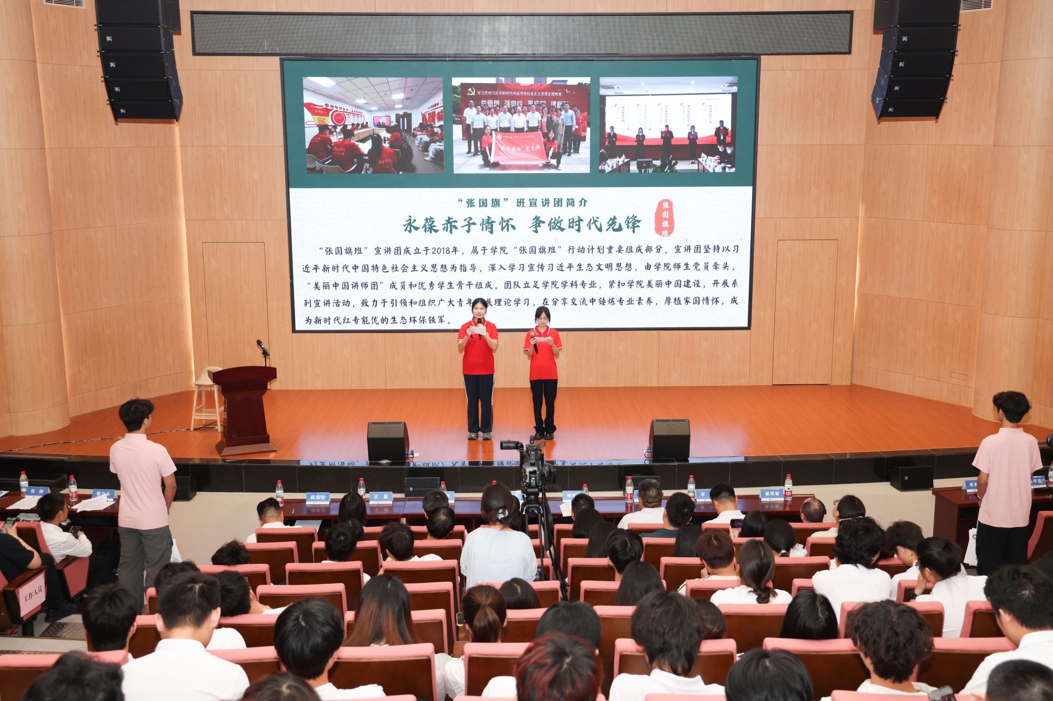 5日上午,“美丽湖北”首场宣讲暨启动仪式在校逸夫博物馆举行。学院党委书记姜明敏,副院长、美丽中国讲师团成员孔少飞教授,学工组辅导员孟庆达、宋霖、申墁烨,“张国旗班”宣讲团以及本科一年级学生代表参加活动。在宣讲环节,“张国旗班”宣讲团通过生动有趣的环境保护知识问答互动,将专业环保知识以通俗易懂的方式传递给现场师生。现场气氛热烈,师生积极参与,绿色发展的理念在互动中深入人心。