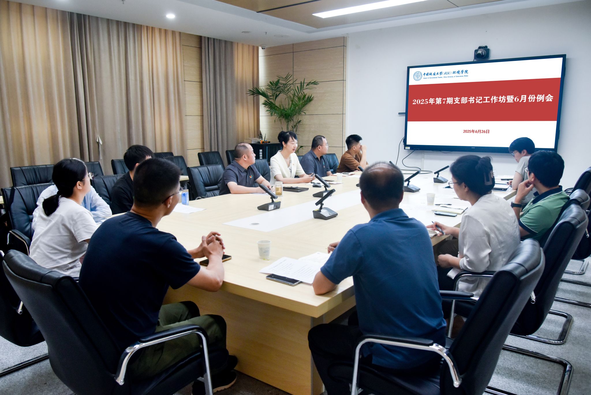 组织秘书王孟雪传达布置近期基层党建工作。她重点讲解了党员基本培训集中大课、学习教育工作提示、院领导班子分工调整等,对相关工作节点要求、质量规范、存在问题等进行说明,对暑假期间学习教育、安全稳定等进行提醒,对大家提出的问题进行回复答疑。