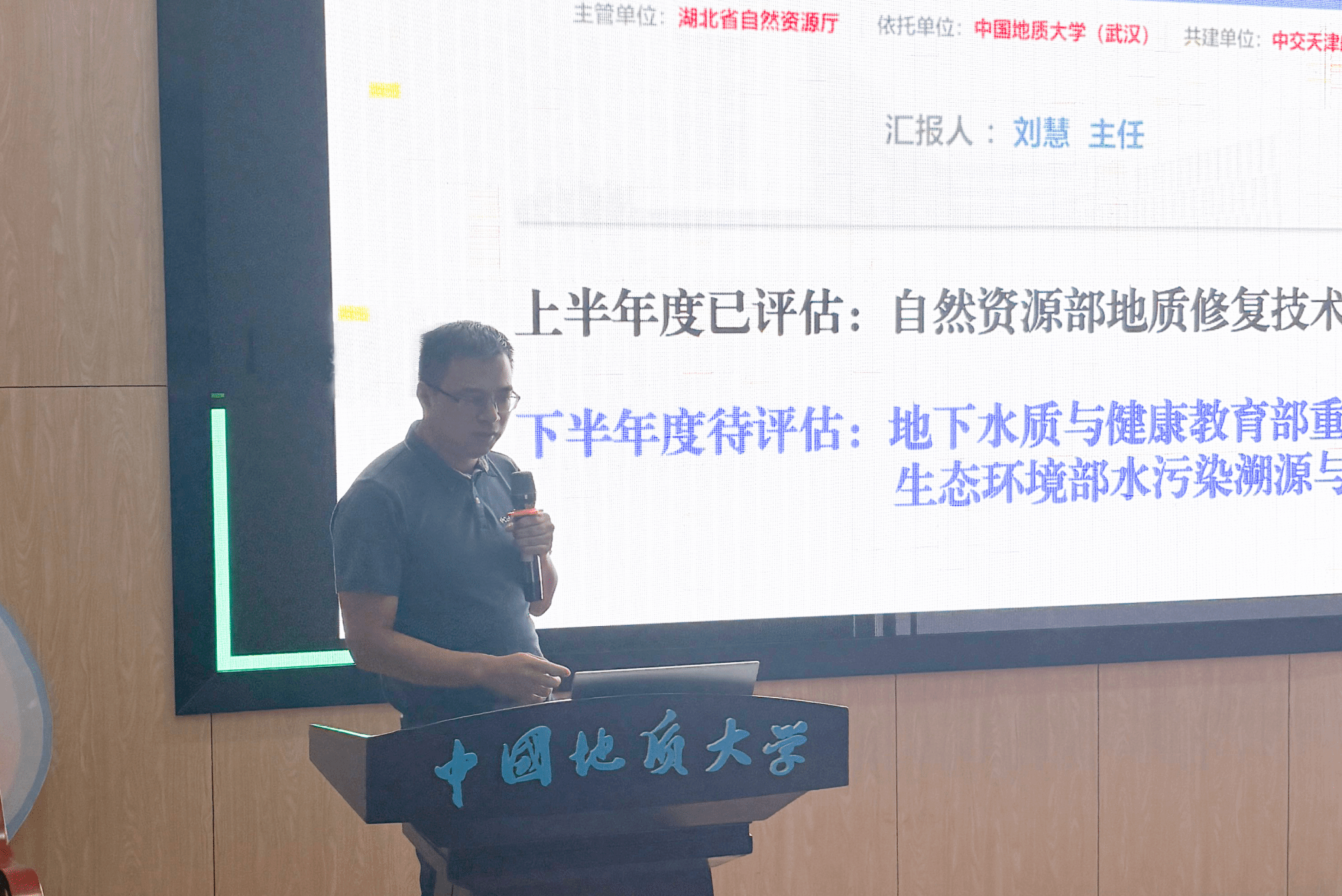 谢先军副院长从科研经费、发展目标与平台建设三方面汇报工作。截至2025年9月,学院新增科研项目136项,实到经费近八千万元。他提出,学院将以“构建地学特色鲜明的一流环境地学学科群”为目标,重点推进地下水质与健康教育部重点实验室等三大国家级平台建设,强化“流域水生态环境保护”“土壤-地下水污染修复”等交叉领域技术研发,推动“水质成因与健康饮水”“地热资源勘探”等方向产学研一体化发展。
