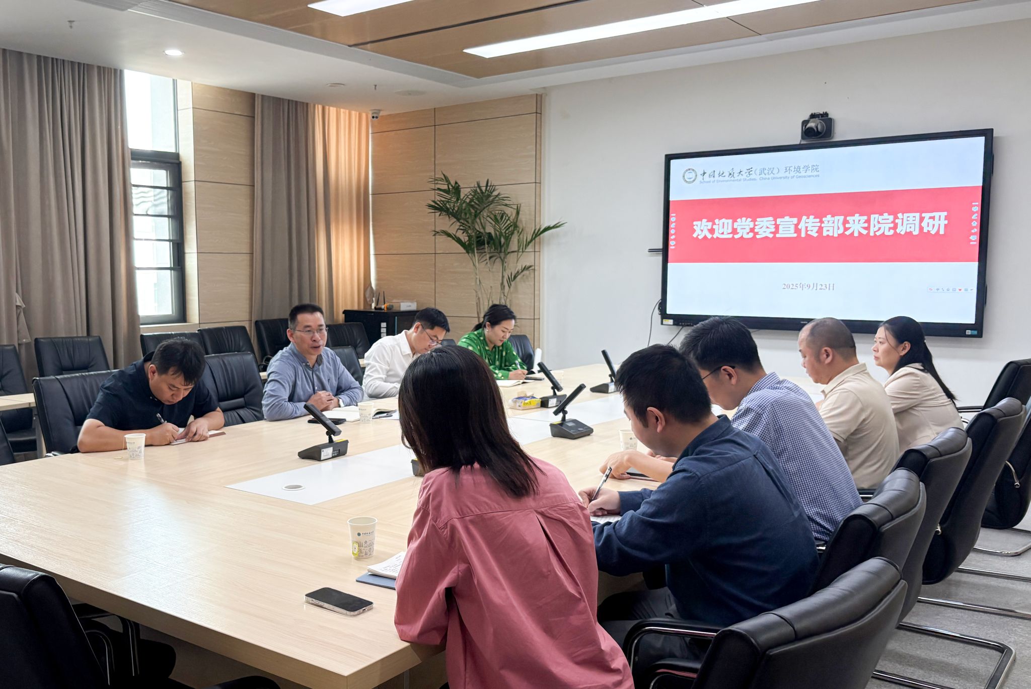 姜明敏对校党委宣传部一行来院调研指导表示欢迎,从延续优良传统、谋划顶层设计、强化宣传引导、打造工作品牌、推进“地质e站”建设等方面汇报学院宣传思想文化工作情况并交流工作建议。学院在传承发展好前期工作基础的同时,将以教育部立德树人机制综合改革试点院系为抓手,继续强化网络宣传阵地建设,持续优化舆论引导,结合学科特点凝练学院文化,进一步发挥宣传思想文化工作在落实立德树人根本任务中的积极作用。围绕学校“地质e站”建设工作新要求,学院将围绕重点区域、重点单位进一步抓落实、抓成效。