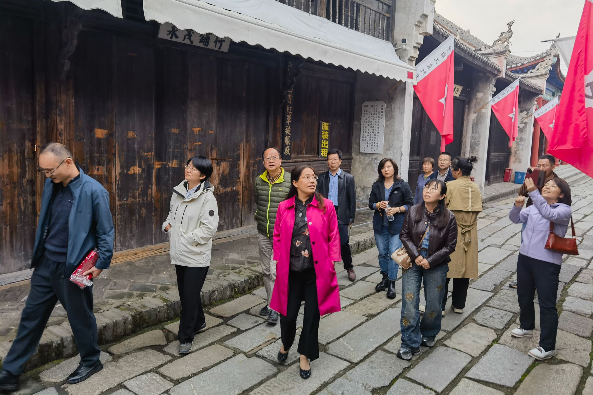 党员们首先参观了湘鄂西革命根据地旧址群——洪湖市瞿家湾红军街。通过参观学习,党员们深入了解了洪湖苏区作为革命根据地的历史背景,尤其是瞿家湾红军街的历史意义。水文系党支部书记王伟在红军街为全体党员讲授了一堂生动的“微党课”,讲述了中国共产党在洪湖苏区为中心创建革命根据地的艰辛历程,带领大家重温了那段峥嵘岁月,进一步增强了大家的历史责任感和使命感。
