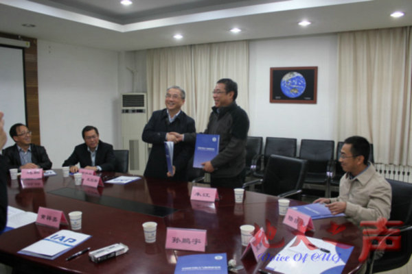 (通讯员李双林)4月19日下午,校长王焰新一行赴北京,与中国科学院大气物理研究所所长朱江签署共建“大气科学菁英班”协议。中国科学院大气物理研究所副所长陆日宇,研究生部主任王英辉、副主任孙鹏宇,我校副校长万清祥、无码动漫