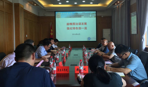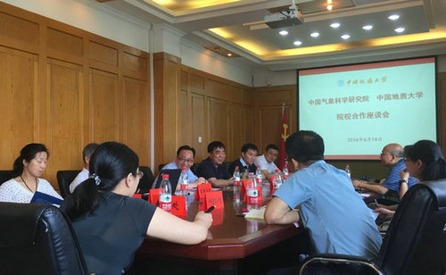 马腾院长主持座谈会。赖旭龙副校长对赵平副院长一行的来访致欢迎辞。刘东杰副主任介绍了学校的历史和取得的相关成就。气科院研究生部王欣主任介绍了中国气象科学研究院的相关情况。李双林教授介绍了我校与中国气象局的合作进展以及大气学科专业的建设情况。
