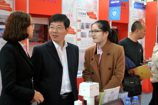 博士生彭浩向研究生工作部部长刘世勇介绍公司发展情况