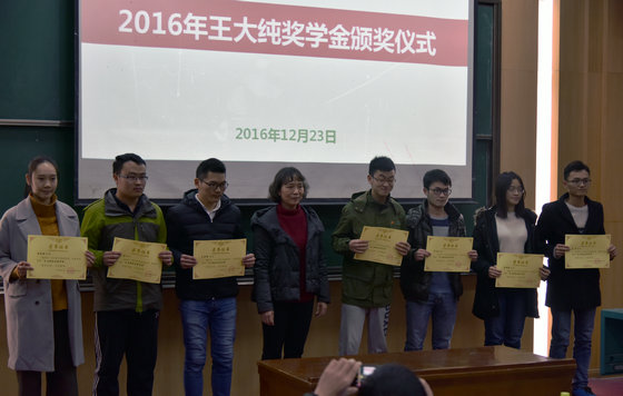 梁杏教授简要介绍了王大纯先生“求实、实际、实在、朴实”的优秀事迹和良好品格。她说,设立“王大纯基金”是传承弘扬“大纯精神”的体现。她从学院层面公开评选、基金评选委员会评审、基金委员会审议等方面介绍了评选过程,对2016年度王大纯基金奖学金的4名“王大纯创新奖学金”获得者和14名“王大纯励志奖学金”获得者对进行了详细介绍。