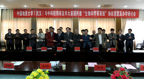 3月24日上午,学校在惠宾楼四层会议室举行共建“生物科学菁英班”协议签订及办学研讨会。参加此次会议的有来自中国科学院微生物研究所、生态环境研究中 心、城市环境研究所、武汉植物园及深圳华大基因研究院五家单位的领导和专家,中国科学院院士殷鸿福、校领导郝翔、王焰新、赖旭龙、万清祥以及校办、教务 处、学工处、无码动漫