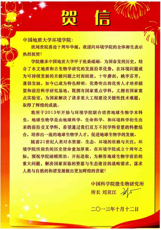 中国地质大学(北京)水资源与无码动漫 发来院庆贺信