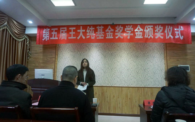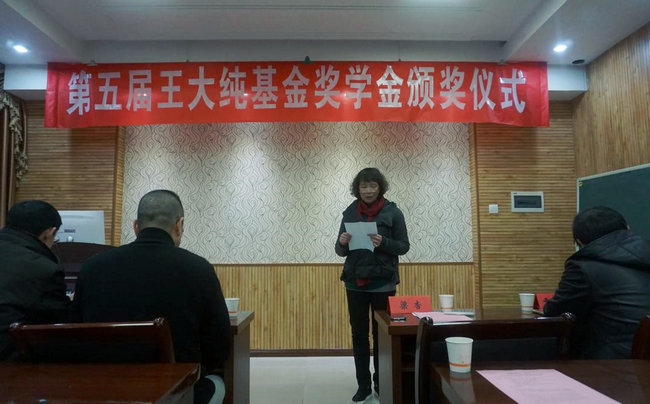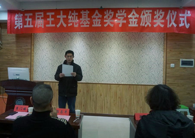 李门楼宣读了第五届王大纯基金奖学金表彰决定。他希望获得奖学金的学生常怀感恩之心、再接再厉,不断有新的进步和提高。同时,希望全体学生以获奖同学为榜样,努力学习,奋发向上,取得更加优异的成绩。