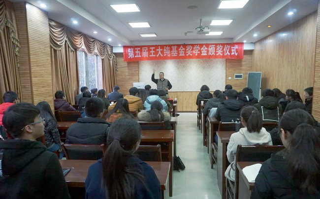 王大纯励志奖学金获得者颁发证书