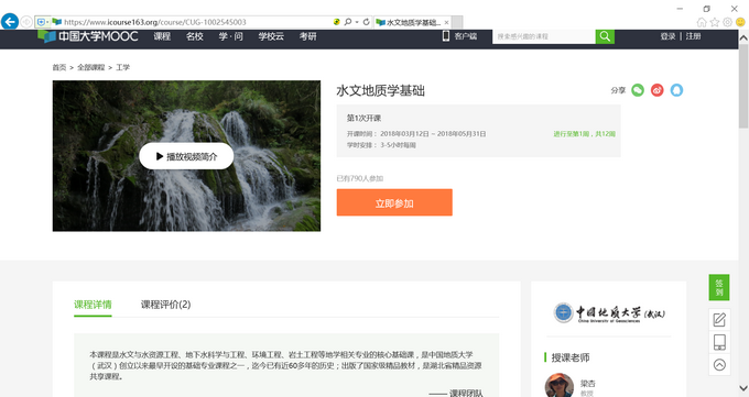 梁杏教授负责的《水文地质学基础》MOOC课程在中国大学MOOC(慕课)优质在线课程学习平台(www.icourse163.org)上线,这是无码动漫
