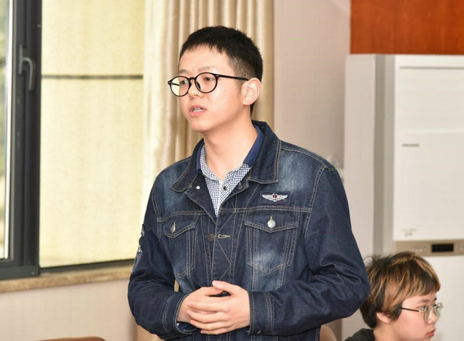 2017届同心社社长李海燕汇报同心社基本情况,并代表2017届同心社成员向朱裕伦先生递交了感谢信。