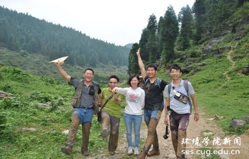 野外考察是我们的专业特色,万老师在野外总是事必躬亲,培养我们如何在实际地质调查中发现问题、提出问题并解决问题,如何把书本上的知识活学活用到生产实际中去。他常说“考试的学霸并不一定代表对知识的真正理解”,并随时为我们寻找提高野外考察能力的机会。2017年春节刚过,中铁第四勘察设计院请求万老师增援,派人开展云南三清高速公路的岩溶水文地质调查。尽管还在寒假,经费也有限,但万老师觉得机会难得,是一次练兵的好机会,决定把我们拉出去练练,检验一下我们对课堂知识的掌握程度以及实际应用能力。于是我们307团队成员相继汇集在云南阳宗海地区开展了为期1个月的野外调查工作,这次调研不仅锻炼了我们的野外科考能力,还有效地解决了该高速公路选线和岩溶隧道突涌水灾害的评价与防治的实际问题。万老师这次练兵的教学方法也是独具一格,为了充分发挥我们的主观能动性,万老师在我们去野外调查前,从宏观上给我们做了调查区的总体介绍,具体的野外考察工作则放手让我们自己开展,包括前期的现场踏勘、路线调查、图件绘制等,野外考察中期,他来到现场,让我们打开野簿、手图,听取我们的野外调查汇报,再逐一分析野外调查方法的正确与否。针对我们在野外调查中对地质现象认识不足以及无法解决的问题,万老师总是会结合具体的野外现象,指出我们在野外观察以及分析问题方法上的失误,耐心地启发引导我们,使我们受益匪浅。万老师常说:“学习就是犯错误的过程,我希望你们在学生时代多尝试,在未来工作中少失误、不犯低级错误、不犯重复的错误。”