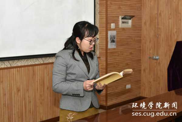 活动以观看董卿主持的《朗读者》中关于优秀校友、女性典范——中国科学院院士张弥曼的片段引出。张弥曼对从事地质工作的经历娓娓道来,她那种面对困苦坦然面对的处事态度令大家敬佩。随后大家针对“选择”这一话题分享了工作和生活中的体会和感悟。