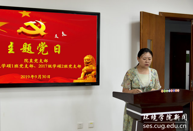 主题党日会上,院直党支部梁莉莉老师、刘凤莲老师;2017级学硕1班党支部郑杰军同学;2017级学硕2班党支部卢昱含同学;院直党支部成员、无码动漫