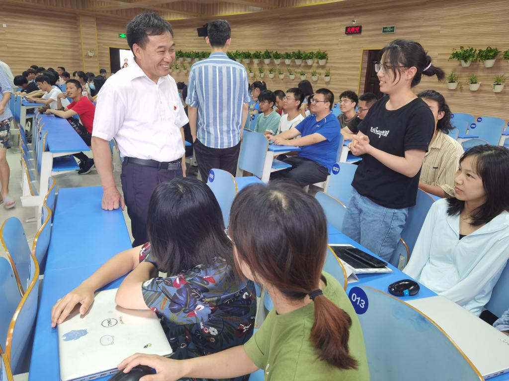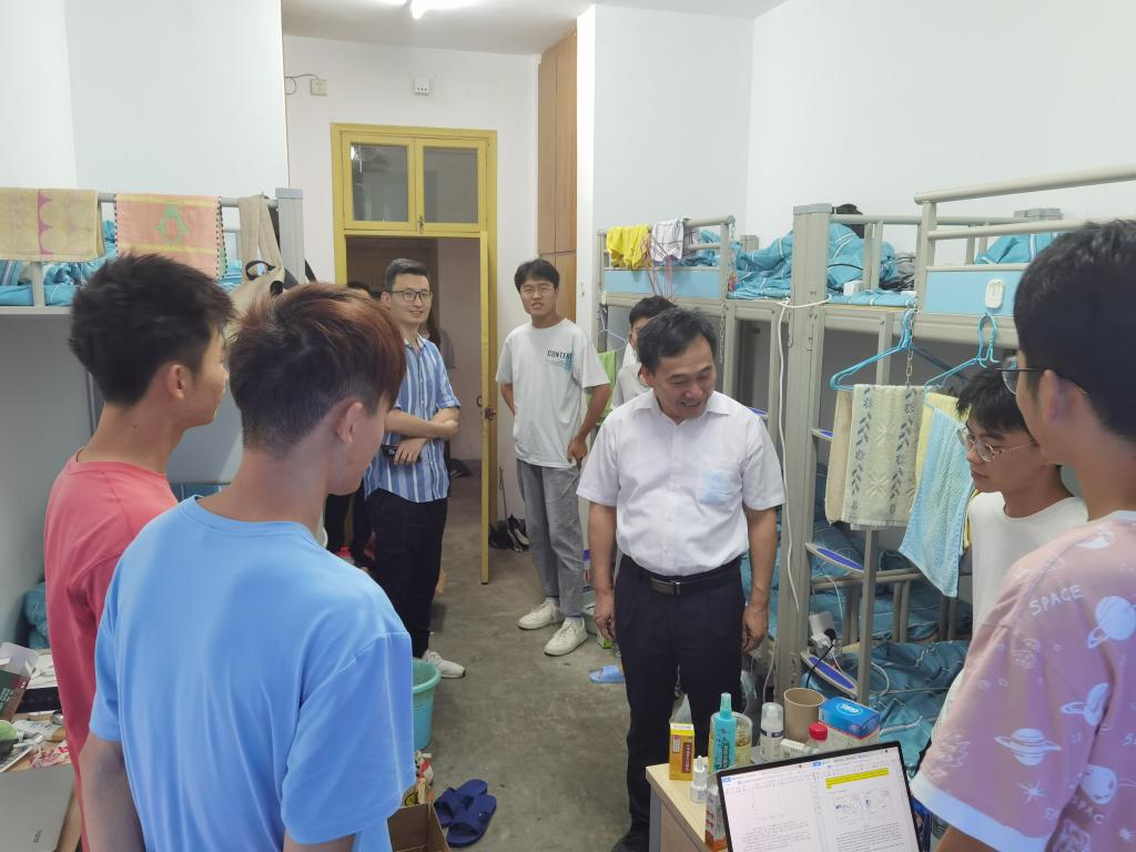 29日下午,李素矿一行来到学生宿舍,与学生亲切交流,详细了解学生实习情况、关怀学生身体健康。询问河南籍学生家中受灾情况,有何困难,要求要将学校政策要求落实好,让同学感受到党组织的关心和大家庭的温暖。叮嘱同学们严格遵守学校和属地疫情防控政策要求做好个人防护,对家在中高风险区的同学表示慰问,要求他们打电话问候家人,实习结束后直接回校,确保不影响新学年学习。同时要求做好防暑工作和野外作业安全。