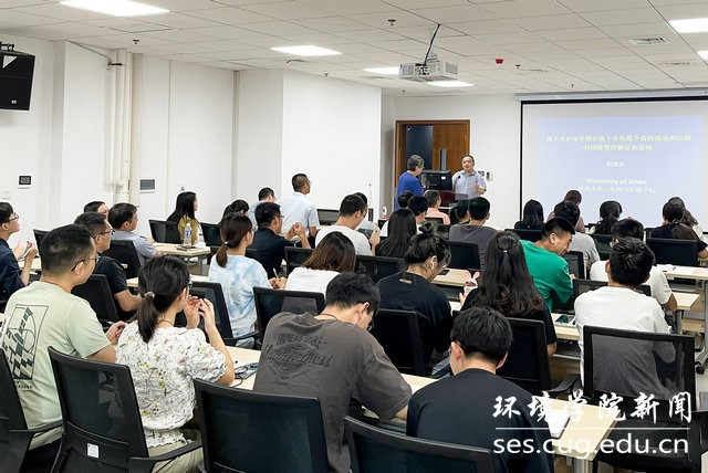 地下水和化学物质在自然介质中的流动和运移受到介质非均质性控制,物理和化学参数在自然介质中变化很大,而且具有极强的随机性。如何在数据有限的情况下描述参数的随机分布,有效预测地下水的流动和化学物质运移是世界上尚未解决的难题。胡晓农教授团队在过去20多年的研究中发展了针对地下水流动、污染物迁移和吸附的各种随机模拟方法和参数反演方法,并把研究成果应用到许多环保工程项目中,取得很多较好的成果,推动了随机水文学的发展。本次讲座既包含了对以往研究的总结和提炼,又融合了近年来最新的研究成果,内容丰富多样,再加上胡晓农教授幽默诙谐、深入浅出的讲授方式,使得讲座精彩纷呈,80人的报告厅座无虚席。