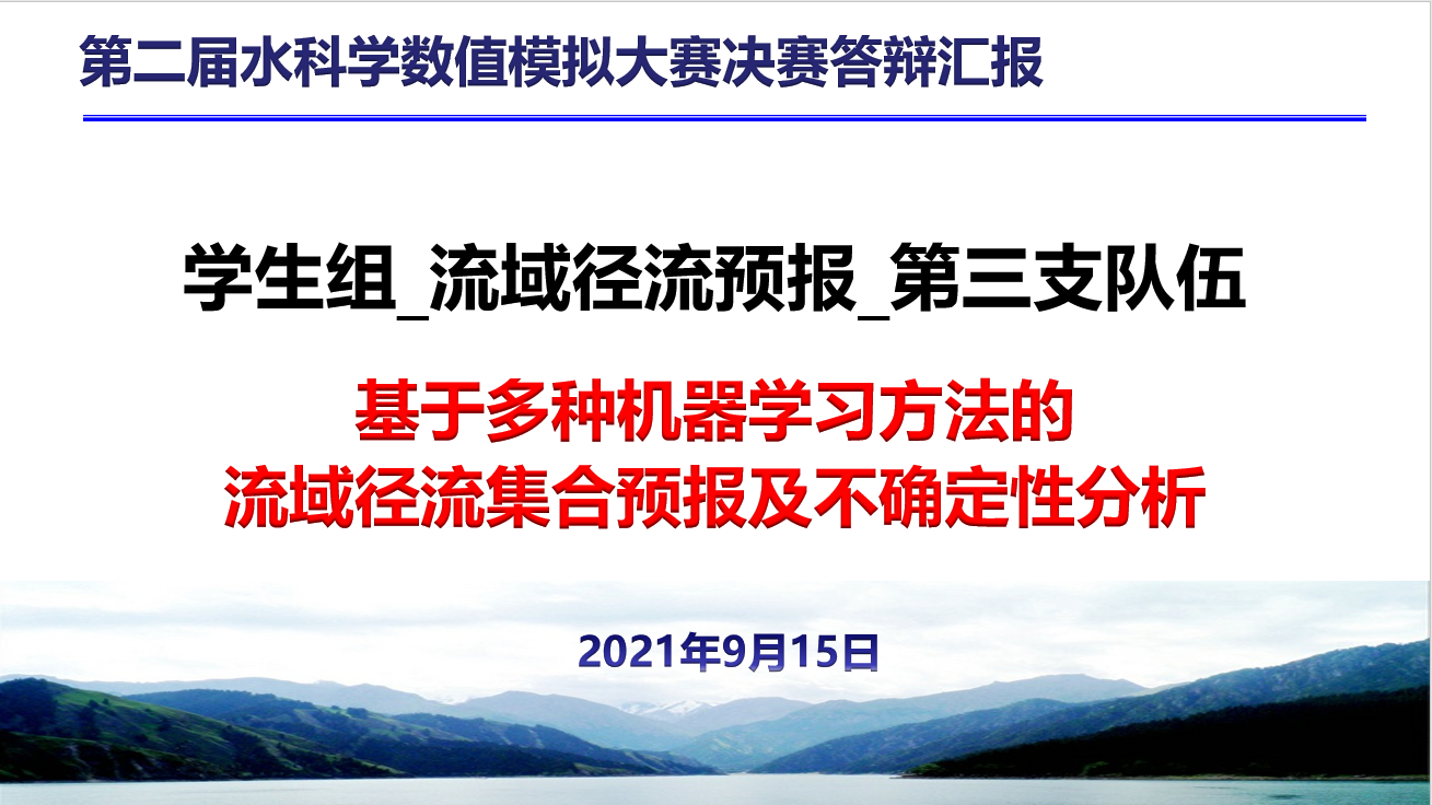 团队学子田靖龙、庄胜杰、雷诺、李和洋、吕楠,斩获流域径流预报学生组一等奖,顾西辉教授荣获优秀指导老师。