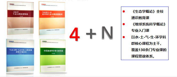 党委积极推进习近平生态文明思想“三进”,依托水、土、气、生环境学科群,推行美丽中国“4+N”课程思政建设。学院组织师生编写《习近平生态文明思想精选》《马克思主义及中国生态文明思想选读》《生态文明生态环境自然资源政策法规读本》《环境地球科学类专业导读》系列教材,校党委书记黄晓玫为该系列教材作序,四本指导教材每年在5000余名学生中使用。