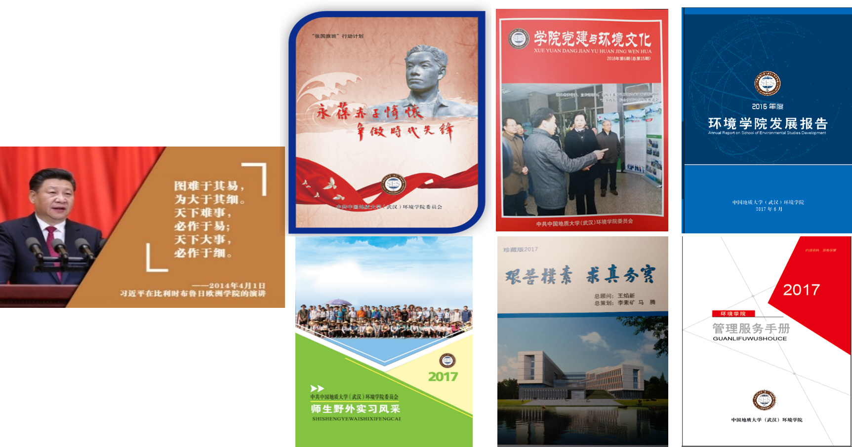 年度发展报告》则集中梳理历年学院发展的高光时刻;《师生管理服务手册》做到精细化服务师生 ;创作的院歌《艰苦朴素 求真务实》人人传唱,唱出环境人的豪迈;《“张国旗班”行动计划画册》浓缩着环境学子的成长历程。
