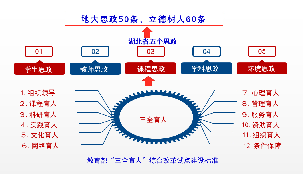 党委是教育部首批“三全育人”综合改革试点学院。试点工作以来,学院高举中国特色社会主义伟大旗帜,坚持以习近平新时代中国特色社会主义思想为指导,增强“四个意识”,坚定“四个自信”,做到“两个维护”,深入学习贯彻落实党的十九大、十九届历次全会精神,贯彻落实全国教育大会、全国高校思想政治工作会议、新时代全国高等学校本科教育工作会议精神,落实学校第十二次党代会决策部署和《美丽中国·宜居地球:2030——地球科学领域国际知名研究型大学建设战略规划》,科学谋划、全面统筹、积极推进“三全育人”综合改革试点工作。