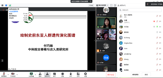盛桂莲教授邀请,11月19日,中国科学院古脊椎动物与古人类研究所付巧妹研究员线上以《Reconstruction of the evolutionary history of prehistoric East Asians》为题作学术报告,该报告是我校校庆七十周年系列学术报告活动之一。盛桂莲教授主持报告会。