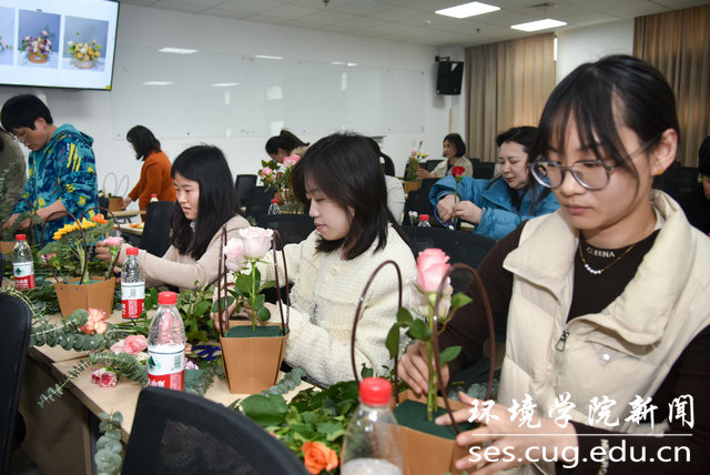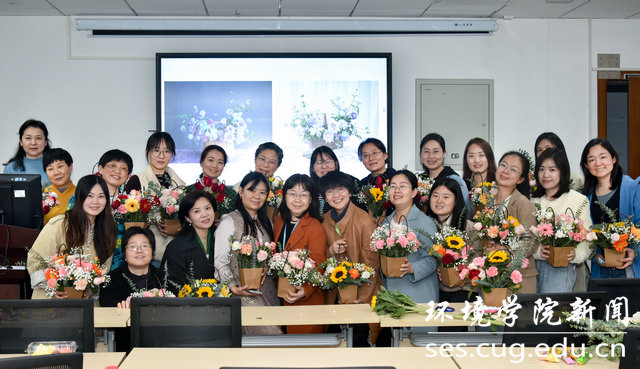 党委书记李素矿,学院女性教工参加。学院工会女工委员邢新丽主持插花活动。
