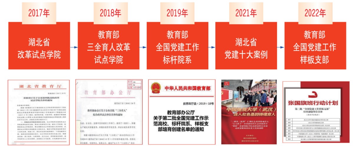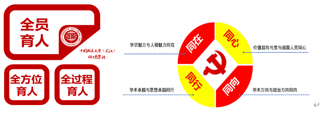 是我国最早开展水文地质专业高层次人才培养的学院,是湖北省第一个设立环境工程博士点、华中地区唯一设立大气科学本科专业的学院。具有本-硕-博完整人才培养体系和水-土-气-生-环学科专业育人体系。学院以立德树人为根本任务,为党育人、为国育才,致力于培养红专能优的新时代生态环保铁军。学院把以史铭院、学术立院、特色建院、人才强院、文化兴院、开放活院、依法治院作为办学治院理念,以课程育人、科研育人、实践育人、文化育人、网络育人、心理育人、管理育人、服务育人、资助育人、组织育人等“十大育人”体系为基础,全面统筹办学治院全过程、教育教学各环节、人才培养各方面的育人资源和育人力量,构建微观的一体化育人体系。学院先后入选湖北省高校试点改革学院、教育部首批“三全育人”综合改革试点学院、第二批全国党建工作标杆院系,“张国旗班”党支部入选第三批“全国党建工作样板支部”,党建成果“注入红色基因铸魂育人”入选2019-2020湖北十大党建案例。
