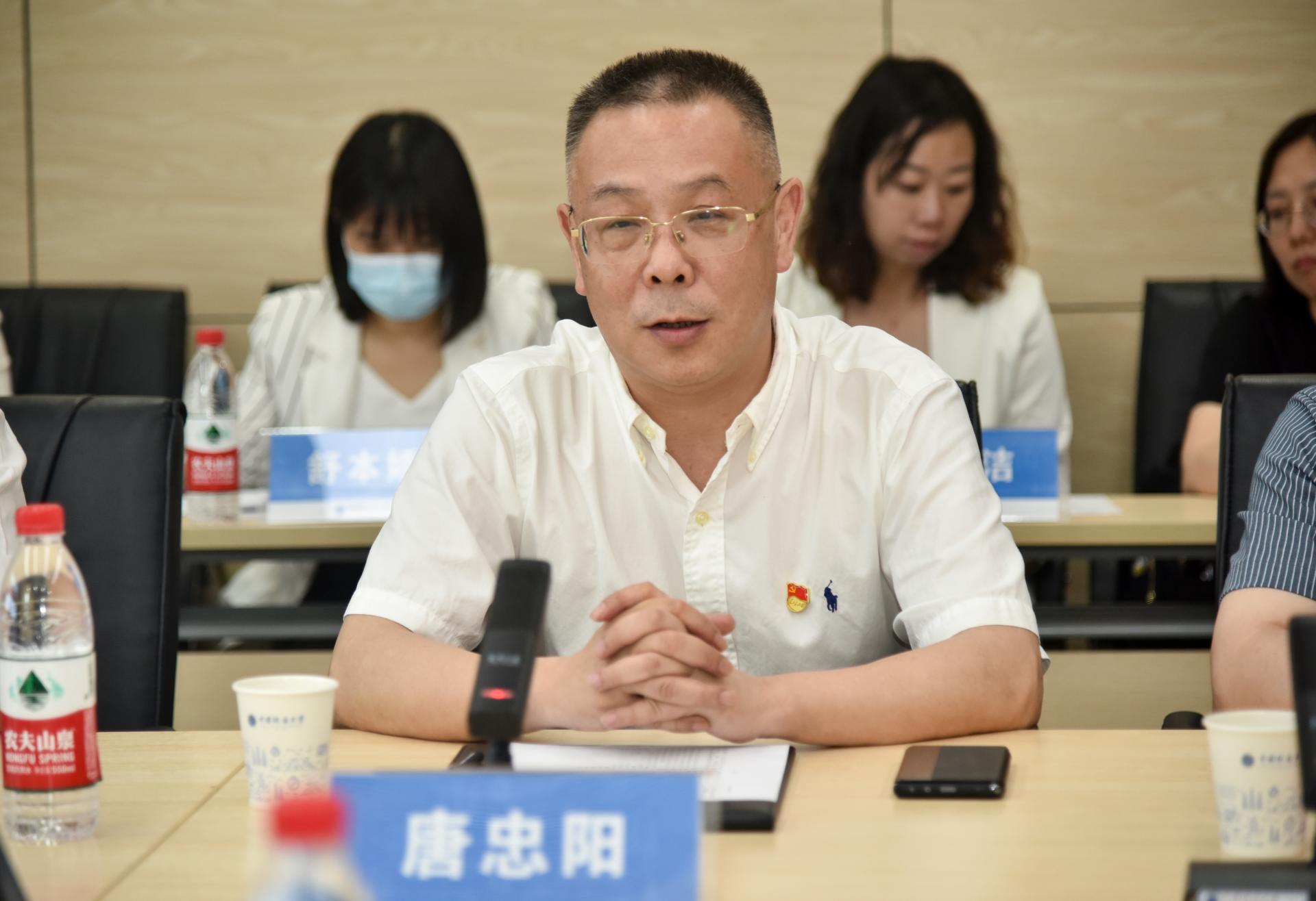 进行党建“双创”工作专题交流。我校党委副书记、纪委书记唐忠阳,学校办公室副主任姜明敏,学院党委书记李素矿,学院党委副书记王海锋,学生党建辅导员陈俊男及“张国旗班”党支部副书记车金凝等参加座谈会。王海锋主持座谈会。