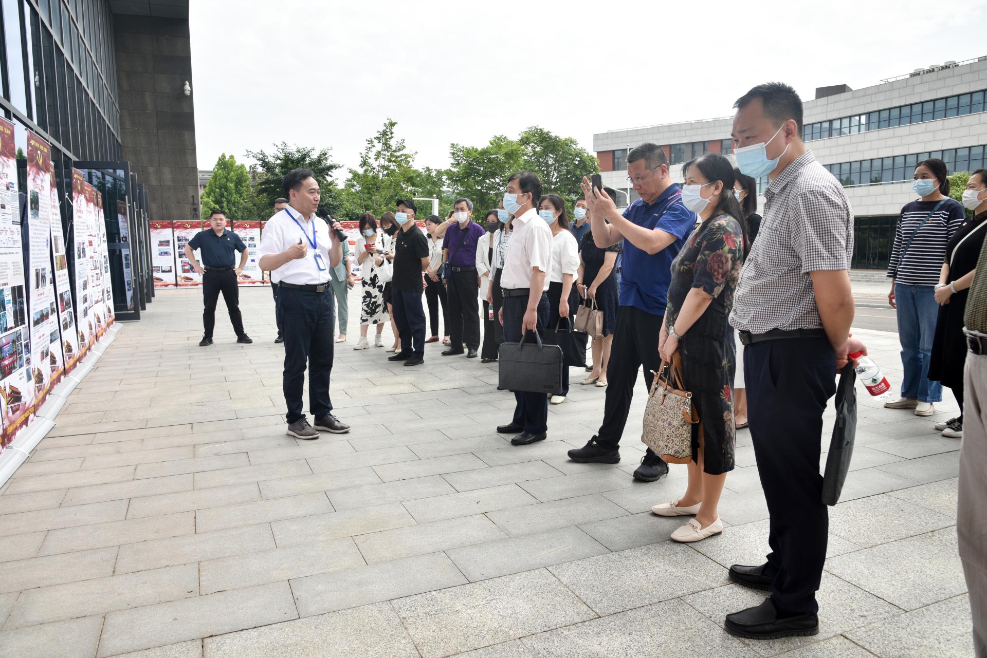 与会人员集体参观以英雄榜样人物命名的全国党建工作样板支部成果展板及无码动漫