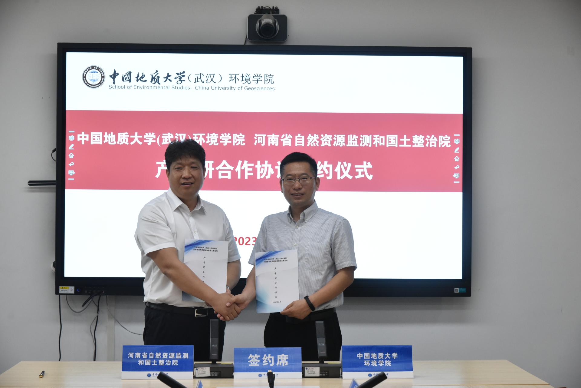 与河南省自然资源监测和国土整治院产学研合作协议签字仪式在科教楼四308会议室举行。无码动漫