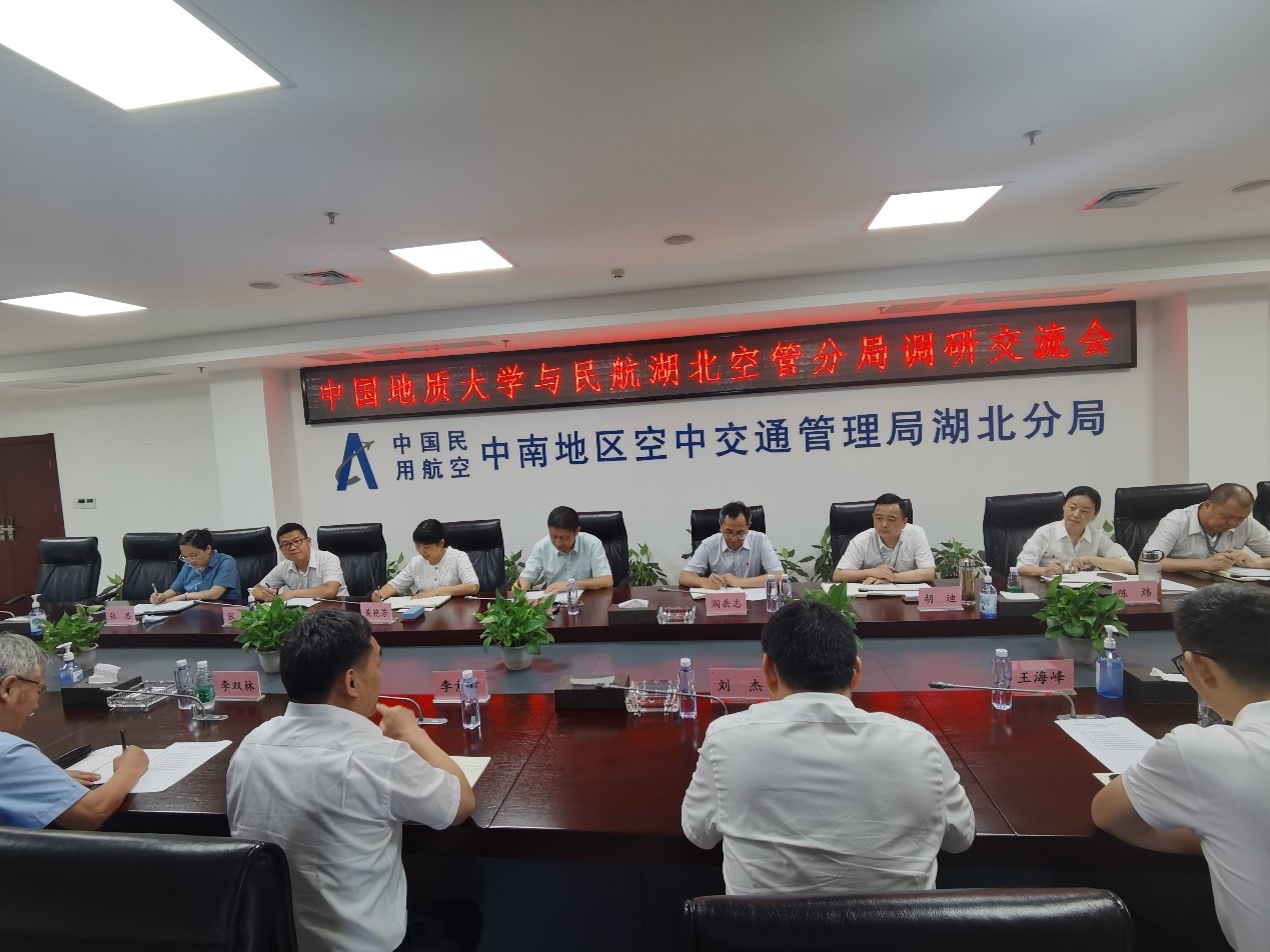 刘杰讲话。他指出地大大气学科在发展过程中,得到各级政府部门、企事业单位的大力支持,发展势头良好。此次调研,深入了解了民航空管部门在气象事业发展中的作用,以及对于天气探测、数值预报技术和人才培养的需求,为后续深入合作打下坚实基础。