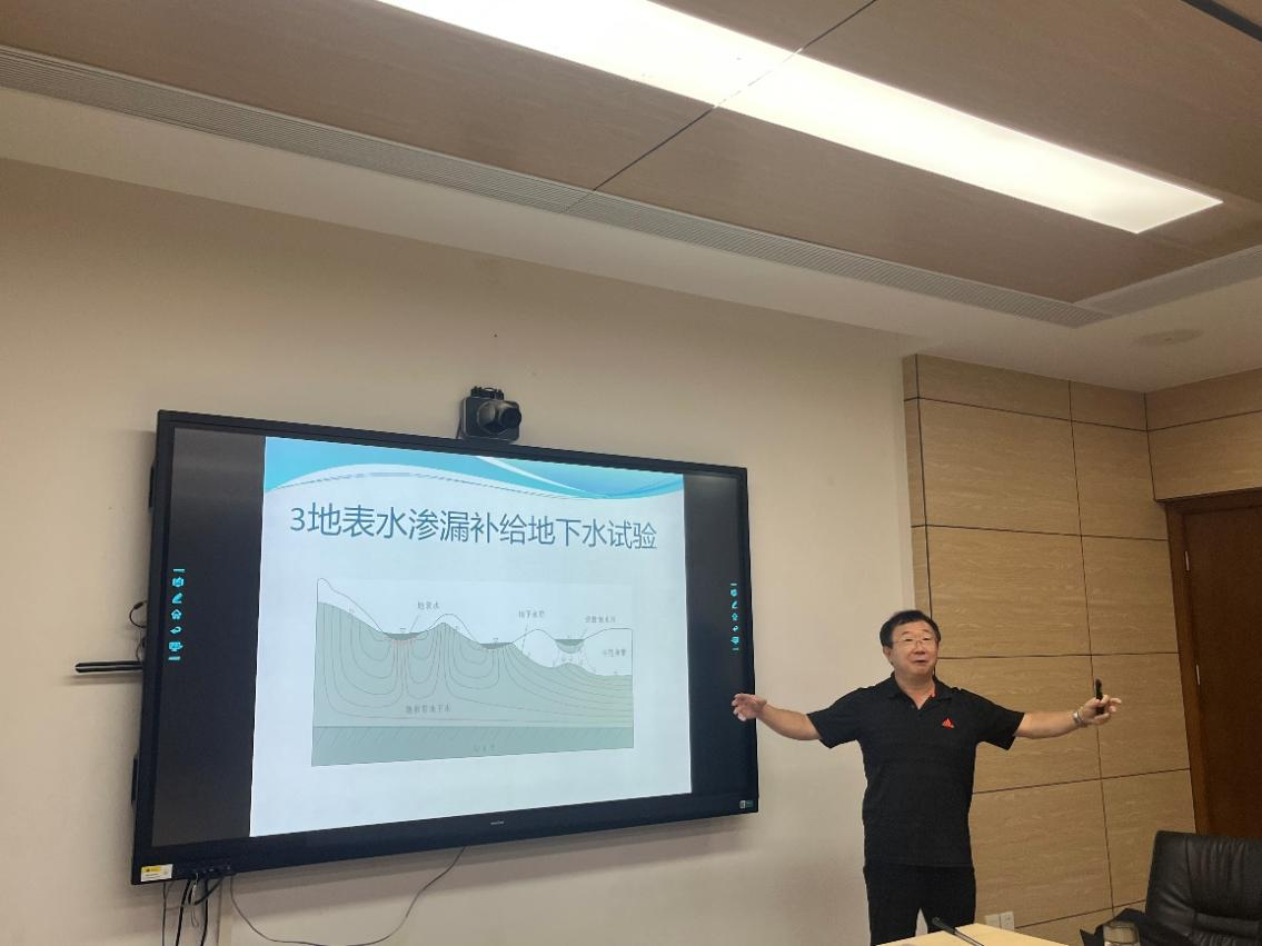 高宗军教授讲述了自己从事水文地质工作40年经历与体会,向在场师生介绍近年来其课题组在抽水试验模拟装置试验、砂槽地下水流系统试验、地表水渗漏补给地下水试验及不同条件下达西试验方面取得的成果,并同在场师生分享了试验中遇到的问题和取得的心得体会。