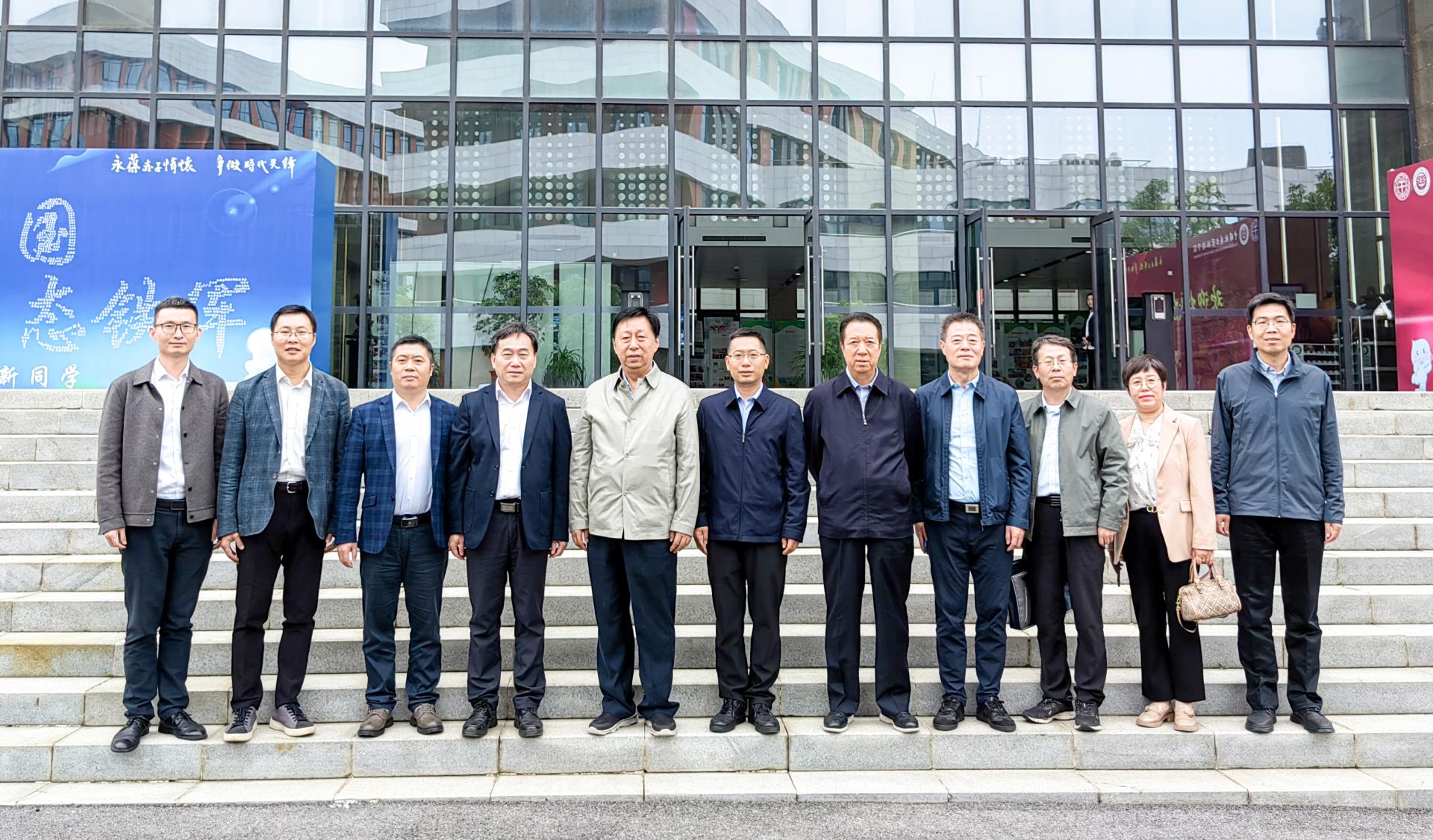 党委书记李素矿、院长史建波、副院长柴波、副院长谢先军、党委副书记王海锋、大气科学系支部书记孔少飞,地质调查研究院副总工程师周宏,校友与社会合作处办公室张鑫陪同参观并参加座谈。