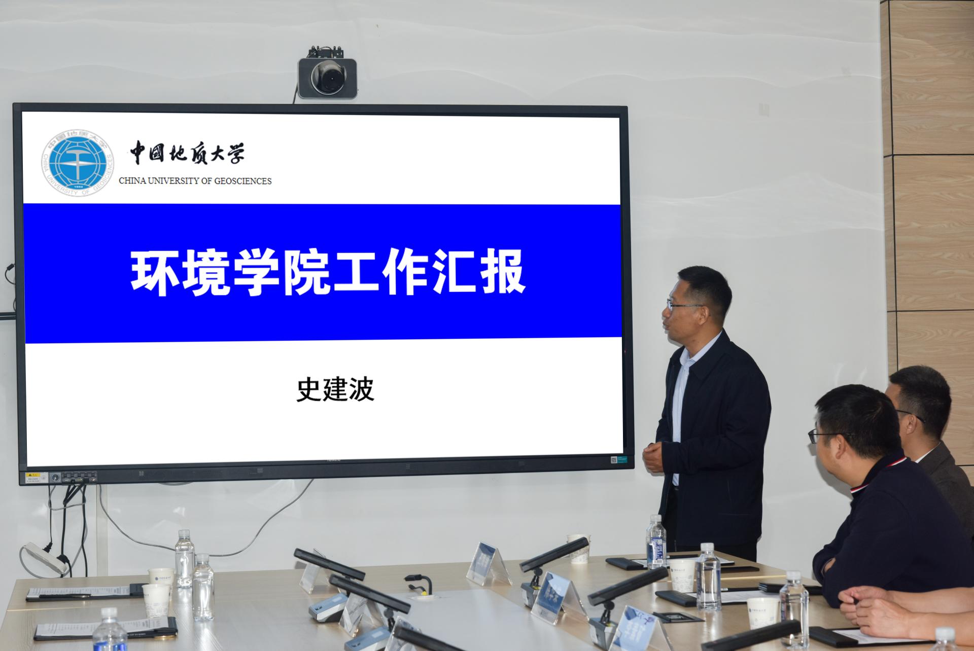 史建波从学院沿革、师资队伍、科研平台、人才培养、国际合作、科学研究等方面重点汇报学院近期发展与工作情况。