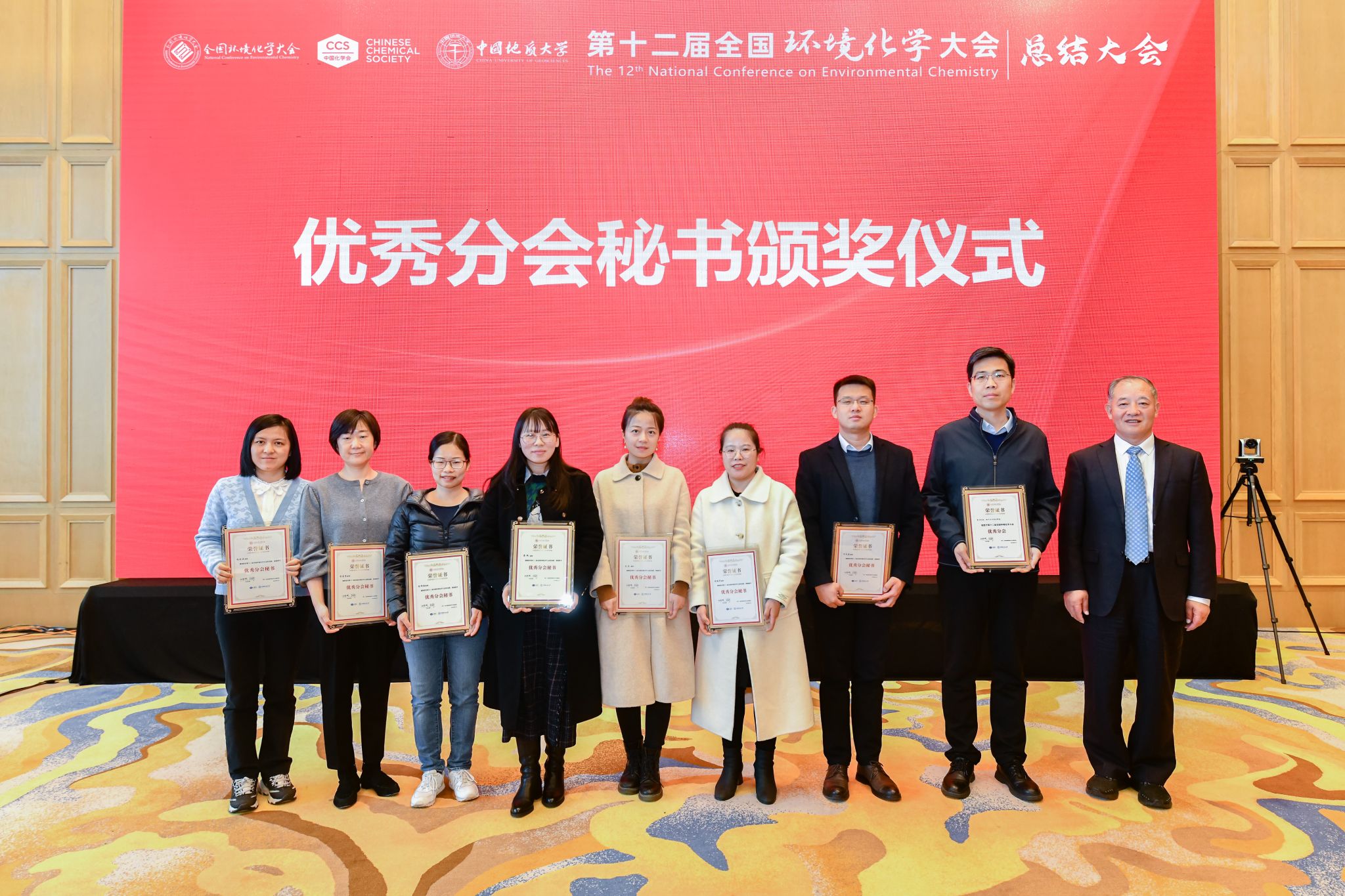 中国化学会环境化学专业委员会郑明辉主任宣读了大会表彰决定。共有20个分会被授予第十二届全国环境化学大会优秀分会,20位秘书被授予优秀分会秘书荣誉称号,15名同志被授予大会优秀组织奖;中国地质大学(武汉)的邓娅敏教授、刘春生教授,江汉大学的梁勇教授被授予大会突出组织奖;来自中国地质大学(武汉)和江汉大学的150名同学被授予第十二届全国环境化学大会优秀志愿者称号。