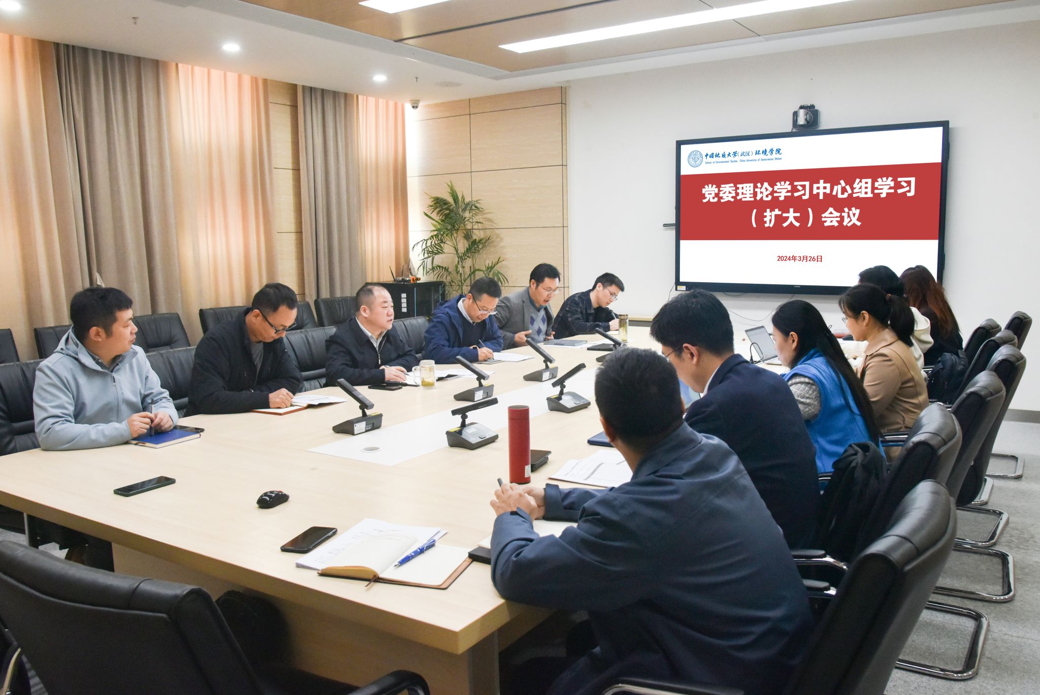党委在科教楼四308会议室召开党委理论学习中心组学习(扩大)会议,专题学习2024全国“两会”精神。学院党委理论学习中心组成员、各系、室(中心)主任书记参加学习。