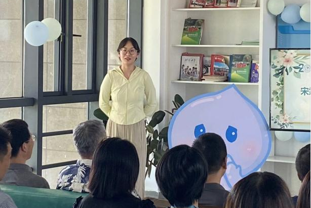 茶话会期间,生物系2003级毕业生钟淑梅校友发表回校感想,勉励同学们继续努力拼搏,并接受了毕业生代表赠送的生物系教师科普作品《地大花鸟集》。