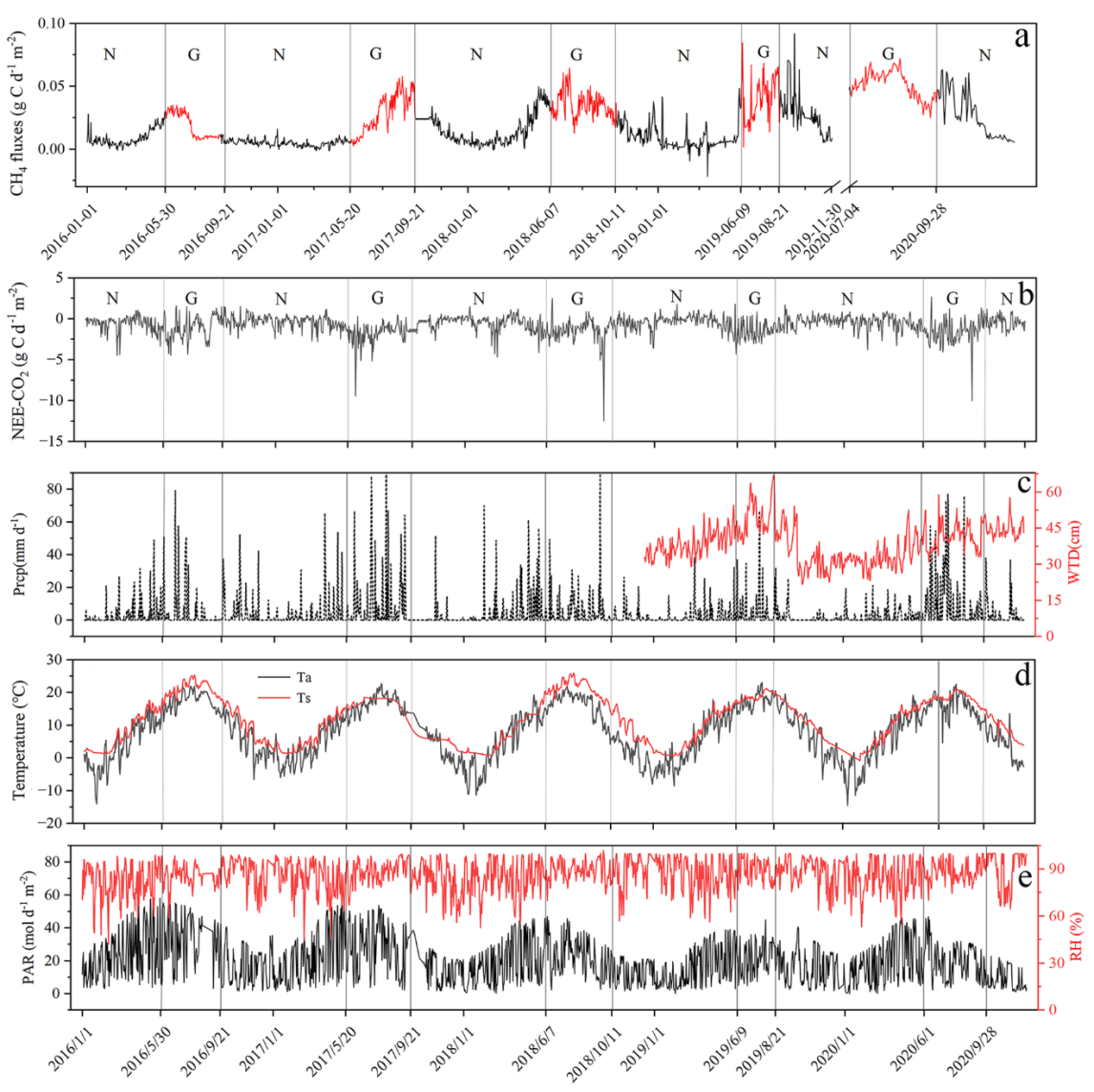 Ziwei Liu, Jiwen Ge*, Shiyu Yang, Xue Li, Jing Xiong, Aoxiang Zheng. Carbon dioxide and methane fluxes in the growing and non-growing season in the Dajiuhu subtropical peatland: A five-year measurement using the eddy covariance technique. Agricultural and Forest Meteorology, 2024, 355, 110135.//doi.org/10.1016/j.agrformet.2024.110135.