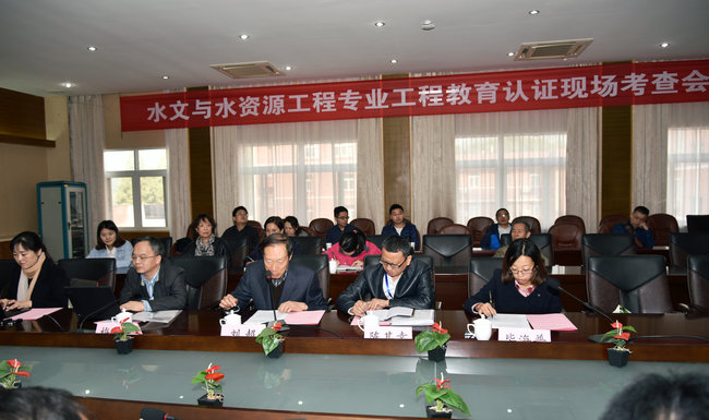 (无码动漫 张学海)2017年11月1日上午在惠宾楼会议室,召开水文与水资源工程专业工程教育认证现场考查会。中国工程教育专业认证协会考查组组长、扬州大学原副校长刘超教授,考评组成员、武汉大学水利水电学院副院长梅亚东教授、广东省水文局教授级高级工程师陈其幸,秘书西安工业大学李 静教授、 常州大学毕海普,学校党委副书记、纪委书记成金华,教务处、学工处、人事处、财务处、校团委、图书馆、设备处、网络中心、地学院、数理学院、外语学院、信息中心等单位负责人,无码动漫 院长马腾、院党委书记李素矿,副院长祁士华、郭会荣、院党委副书记朱继,水资源与水文地质系老师及无码动漫 相关系室老师等参加考查会。
