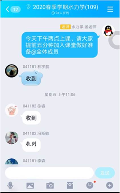 水文与水资源工程、地下水科学与工程、环境工程专业的一门重要的专业基础课,本学期共有7个班,200余名学生参加学习。在全国人民共同抗击新冠肺炎疫情的关键时刻,在举国上下抗击疫情的特殊时期,《流体力学(水力学)》课程团队积极响应教育部“停课不停学”的号召,迅速参与“地大一平三端”的学习培训,认真研究《流体力学(水力学)》课程教学特点、网络教学资源的状况,确定采用“以学为主、以导为辅”的线上、线下混合式教学方式,即首先由教师引导课程教学目标和知识要求——学生直接利用网上水力学精品教学资源自学——教师线上课堂串联与质疑各章节知识要点、网上直播——学生+教师在线讨论释疑——学生线下练习巩固——教师考核及反馈。