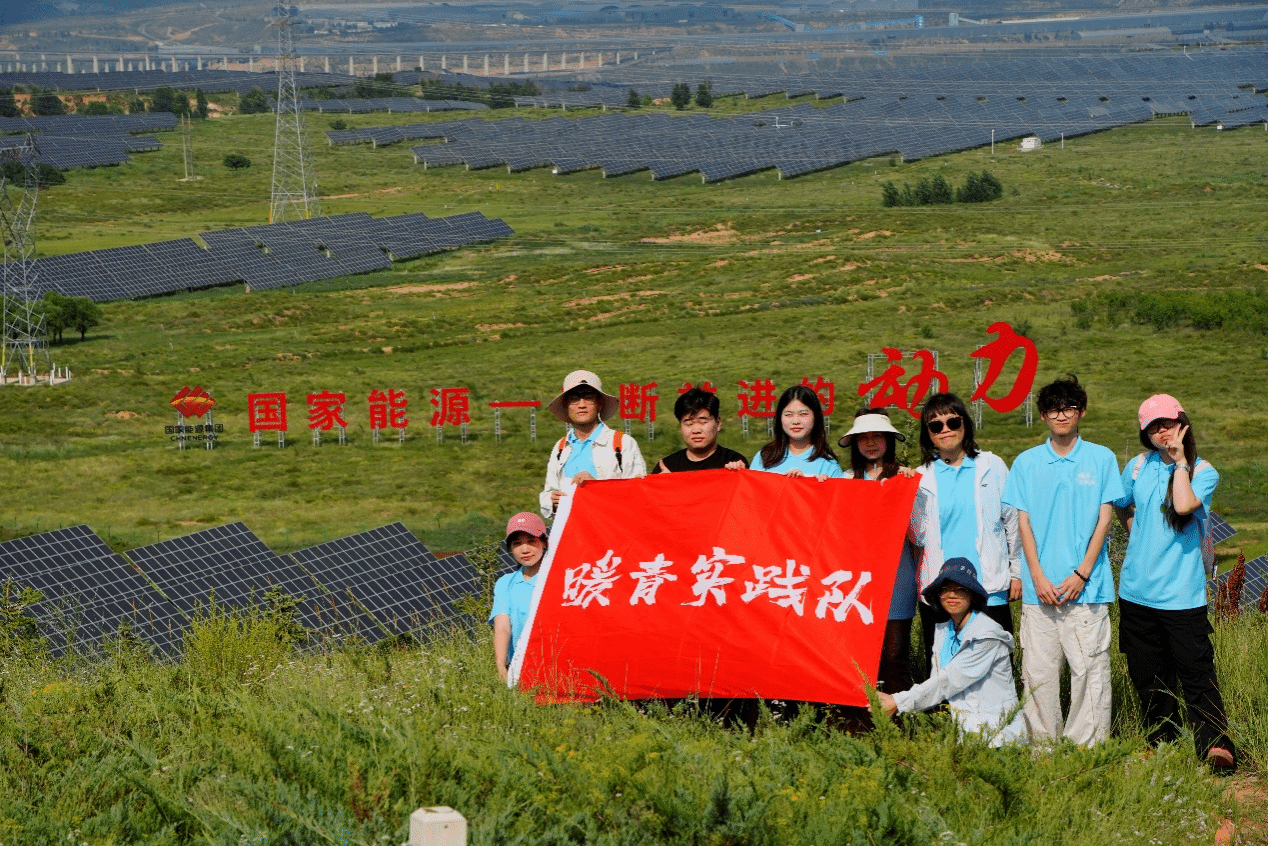围绕“采煤沉陷区—光伏—多产业融合”链条,实践队先后参观乌兰满赖梁煤矿生态修复区、巴日图塔村“天骄绿能”50万千瓦光伏基地及鄂尔多斯现代能源研究中心,实地学习尾矿治理方法,全面了解风、光、储、氢一体化发展的实现路径,体悟“双碳”战略在资源型地区的生动落地。